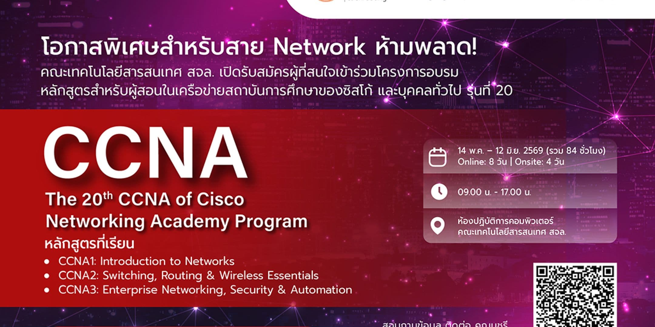 หลักสูตร CCNA 1-3 (รับจำนวน 8 คน) สมัครได้ตั้งแต่บัดนี้ – 8 พฤษภาคม 2569